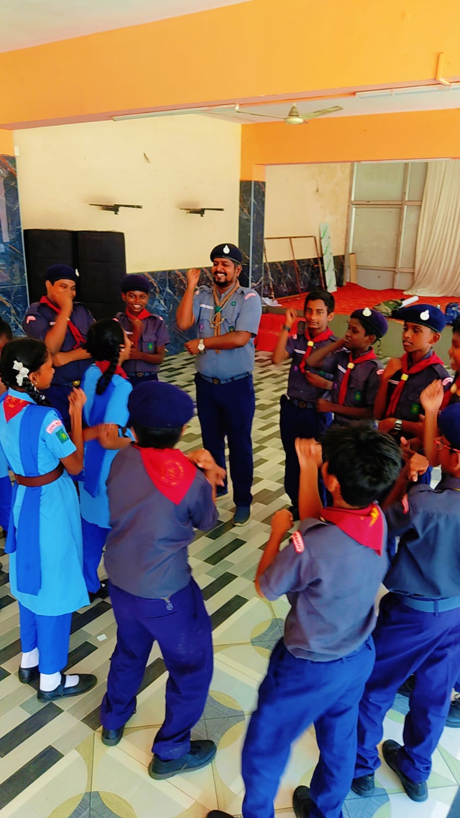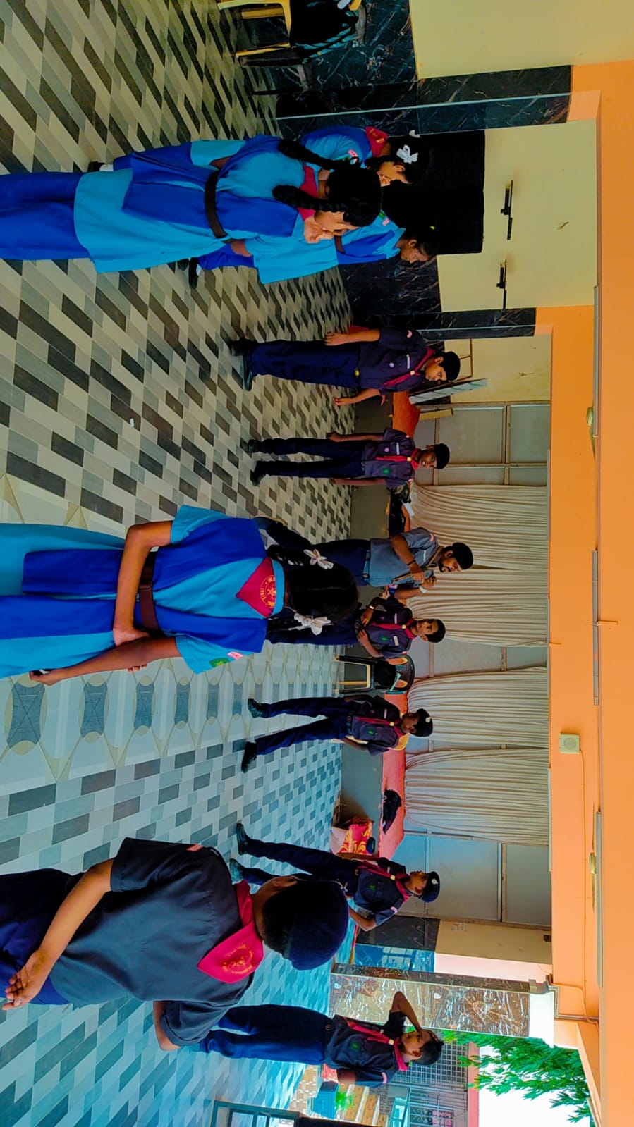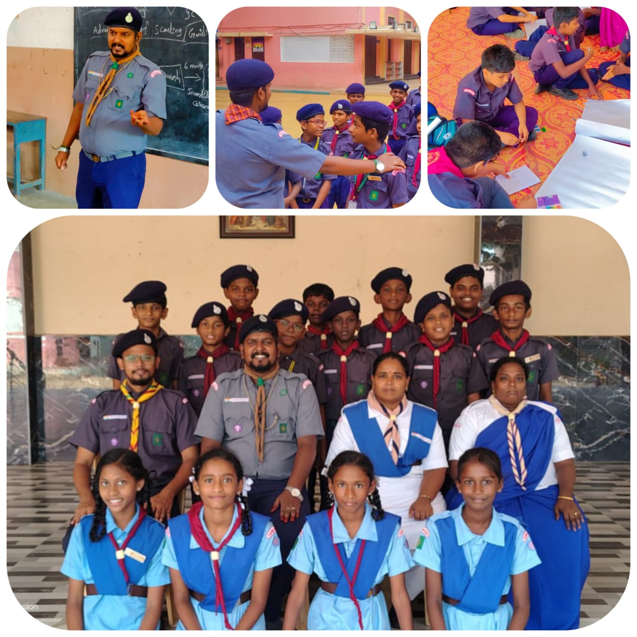 Scout and Guide Camp Our school organized a Scout and Guide Camp during the quarterly holidays under the guidance of Mr. Kishore. The camp included activities that promoted discipline, teamwork, and leadership. Students actively participated in drills, campfire sessions, and outdoor tasks, gaining valuable skills and memorable experiences.