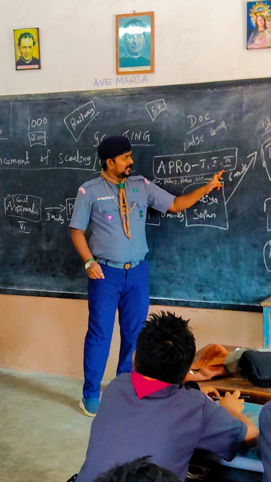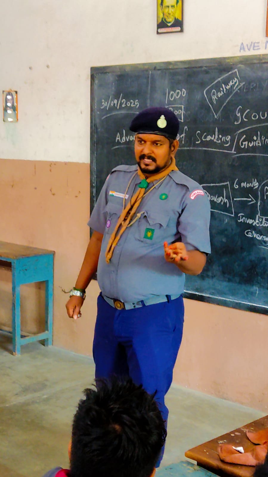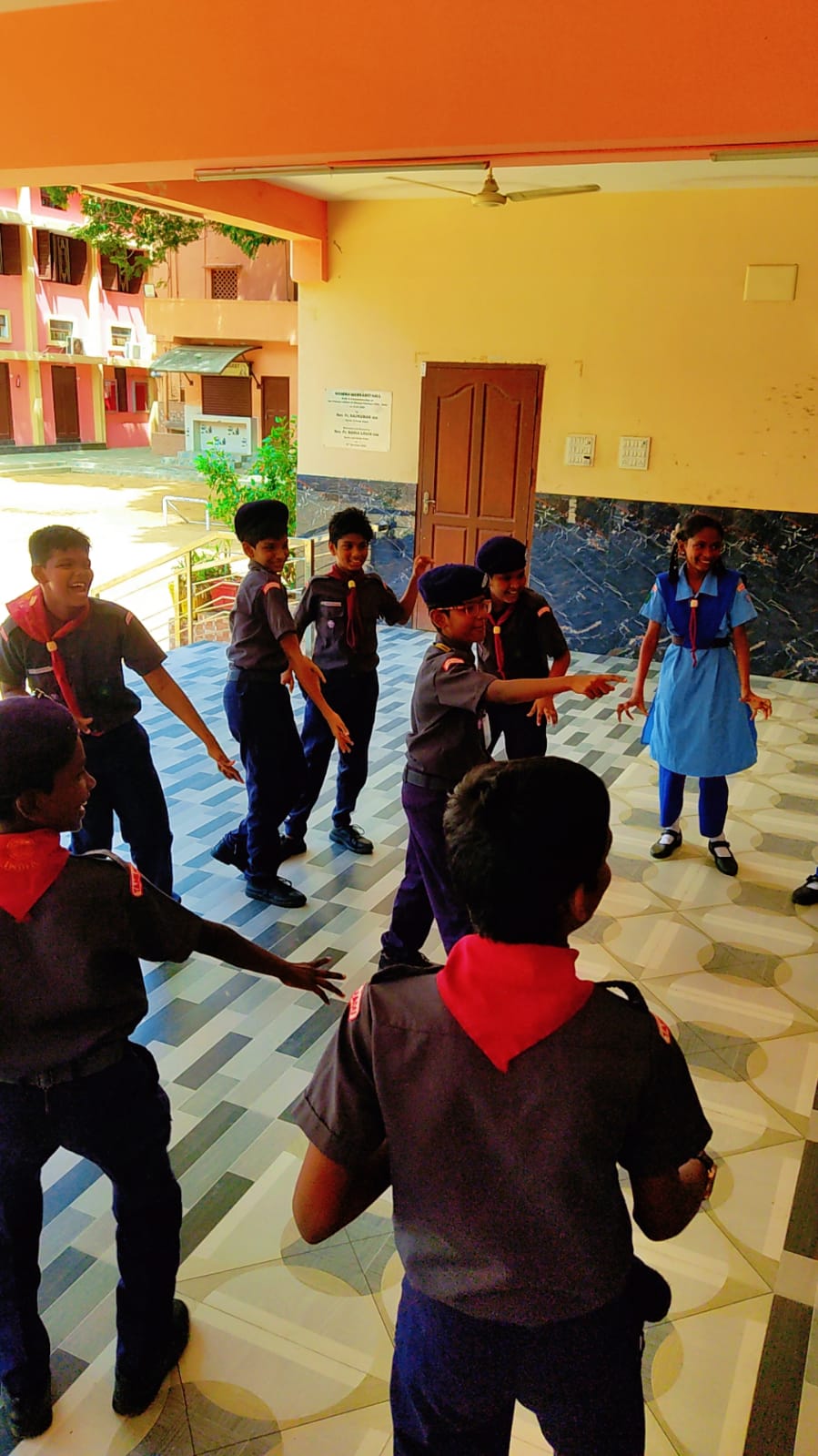 Scout and Guide Camp Our school organized a Scout and Guide Camp during the quarterly holidays under the guidance of Mr. Kishore. The camp included activities that promoted discipline, teamwork, and leadership. Students actively participated in drills, campfire sessions, and outdoor tasks, gaining valuable skills and memorable experiences.