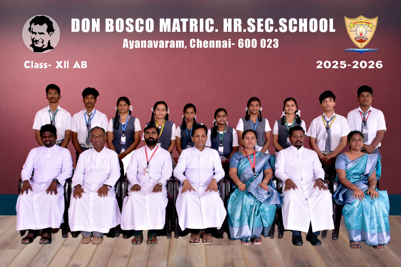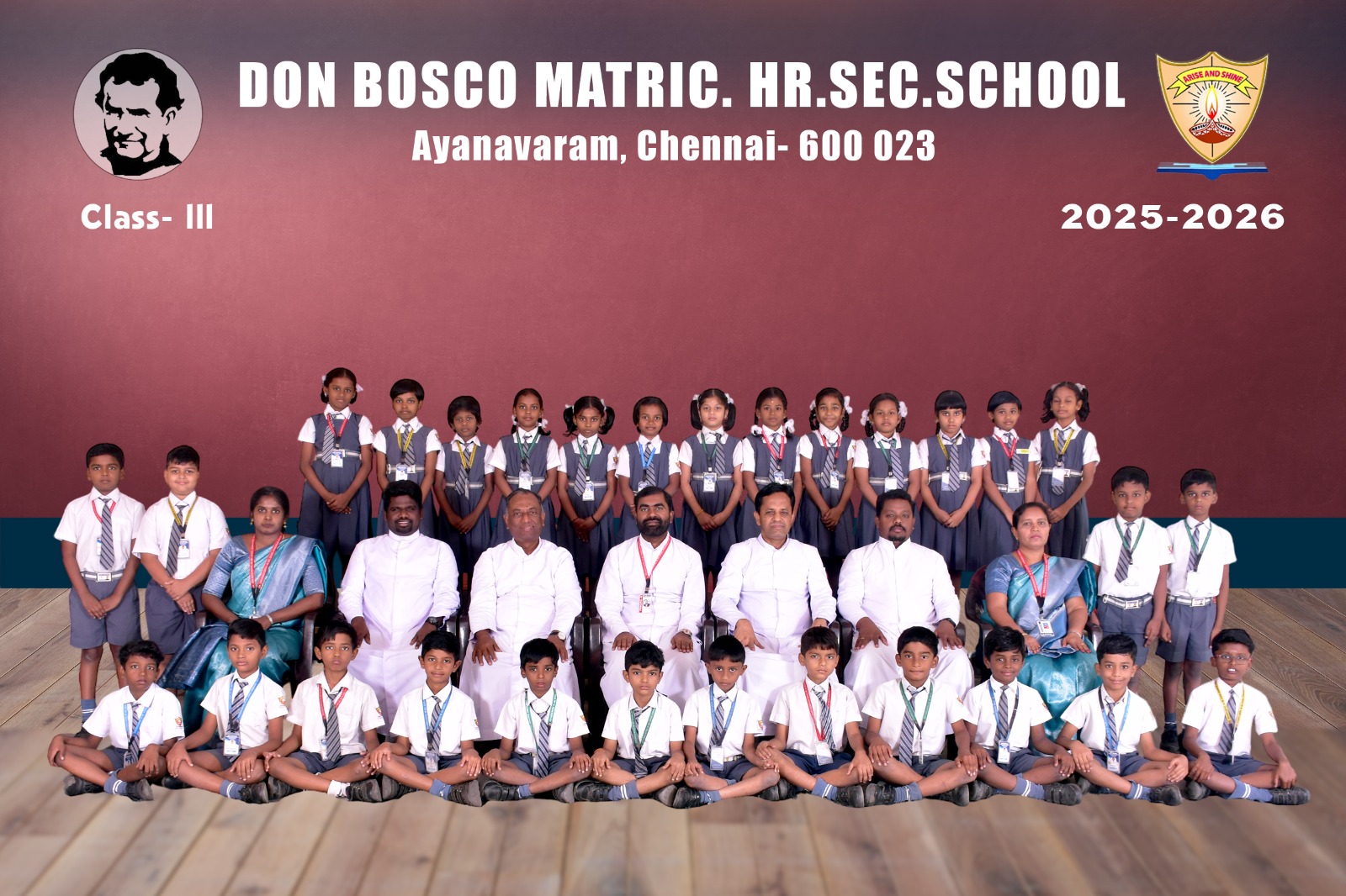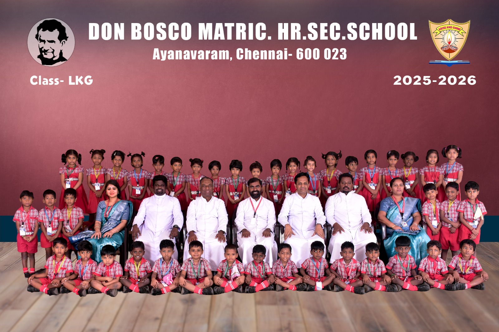 Class-wise Group Photographs (LKG to XII) The class-wise group photographs from LKG to XII were taken as a cherished record of the academic year 2025-2026, reflecting the unity and spirit of our institution. The photographs were captured in the esteemed presence of our Rector and Correspondent Father Thamathiruthavam SDB, our beloved Principal Father Vijay Williams SDB, Vice Principal Ms. Fathima Selvi, Community Fathers, dedicated teaching faculty, and office staff. These photographs stand as a lasting testament to the collective commitment, guidance, and harmonious collaboration of our entire school community.