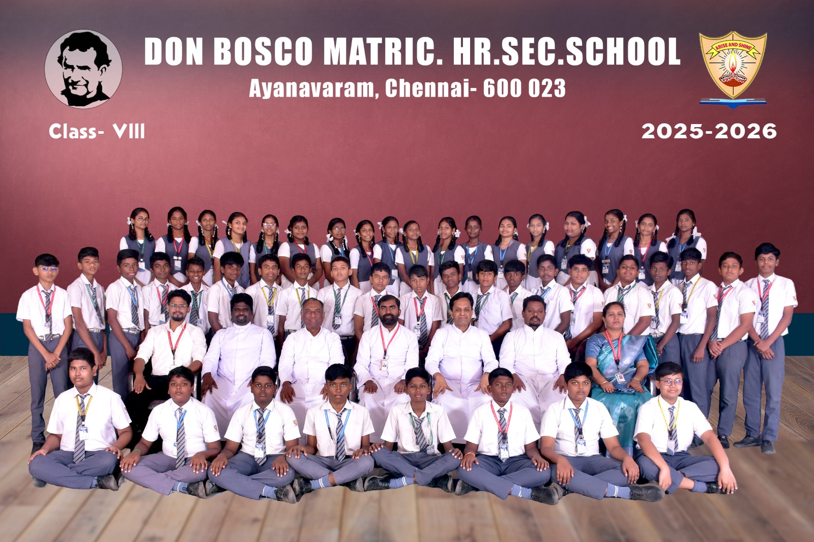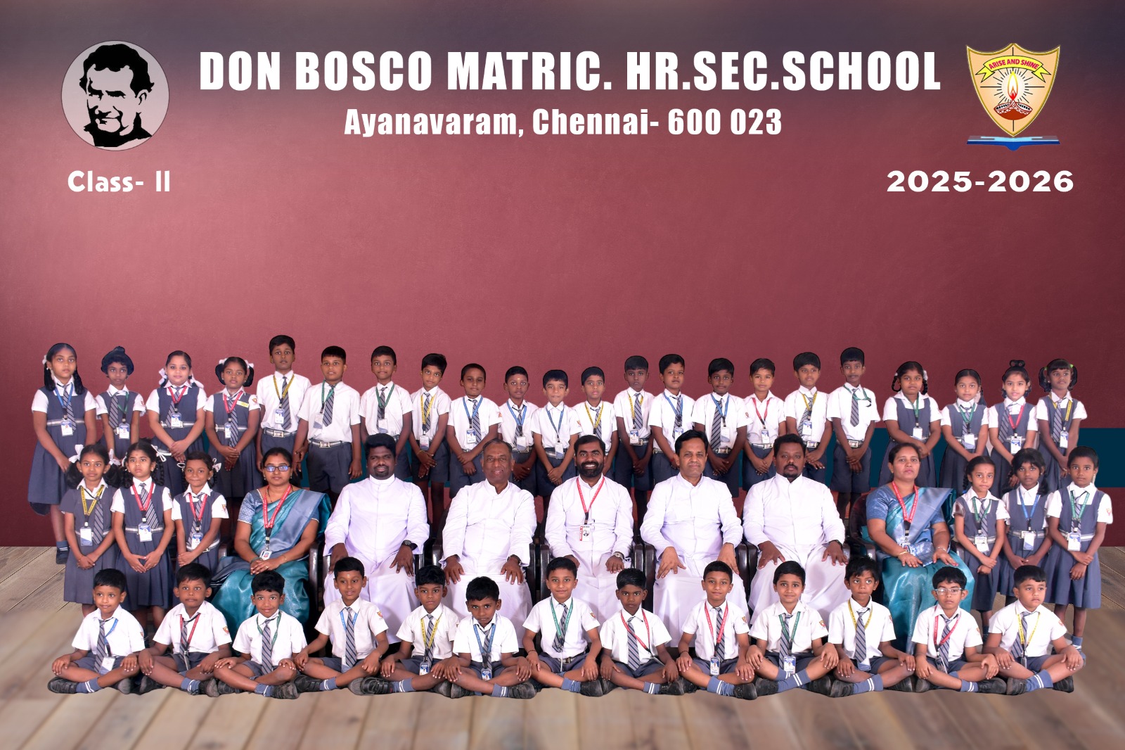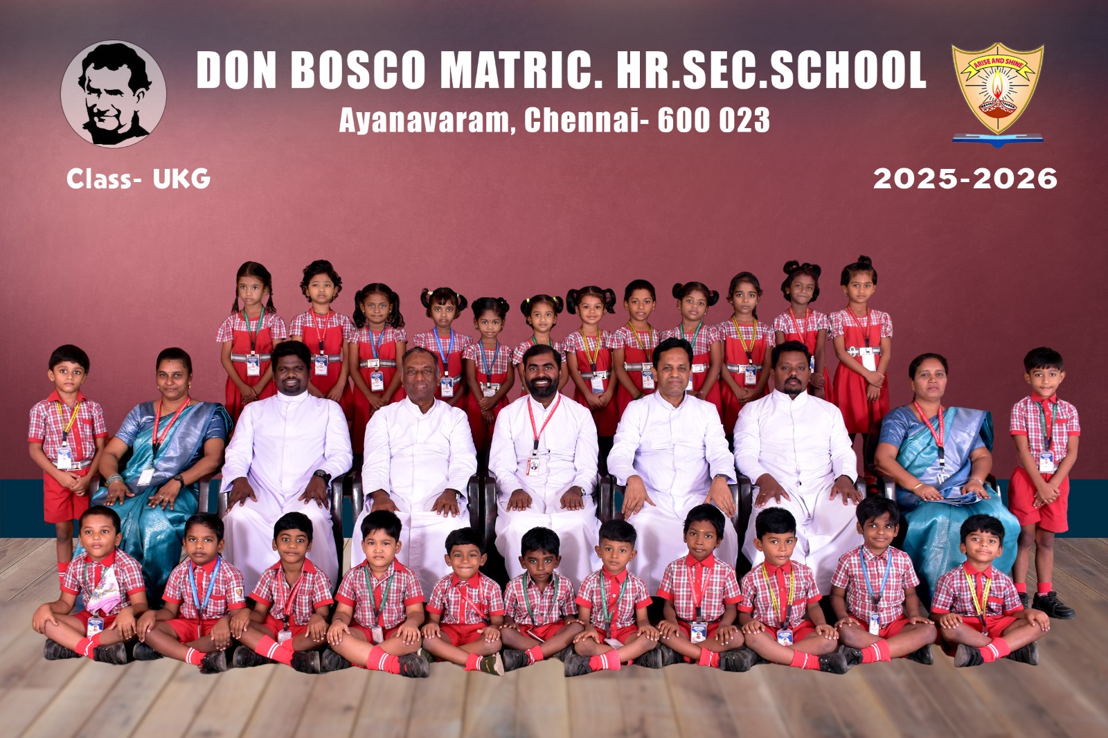 Class-wise Group Photographs (LKG to XII) The class-wise group photographs from LKG to XII were taken as a cherished record of the academic year 2025-2026, reflecting the unity and spirit of our institution. The photographs were captured in the esteemed presence of our Rector and Correspondent Father Thamathiruthavam SDB, our beloved Principal Father Vijay Williams SDB, Vice Principal Ms. Fathima Selvi, Community Fathers, dedicated teaching faculty, and office staff. These photographs stand as a lasting testament to the collective commitment, guidance, and harmonious collaboration of our entire school community.