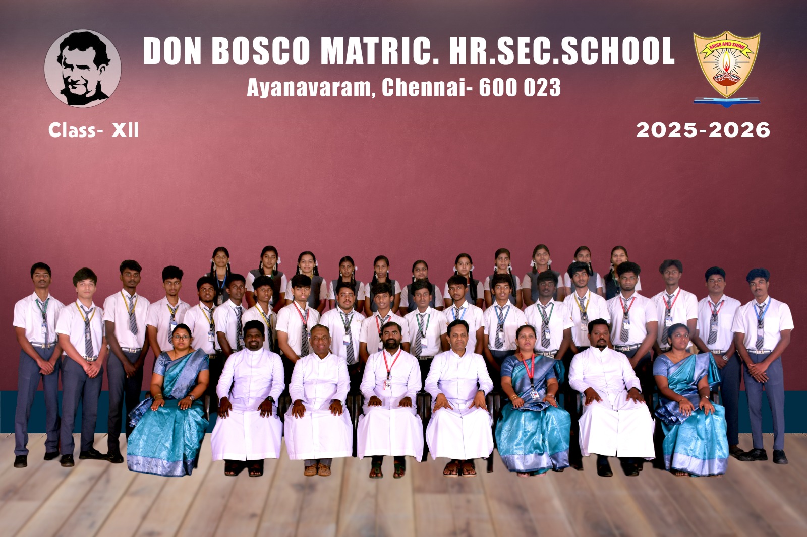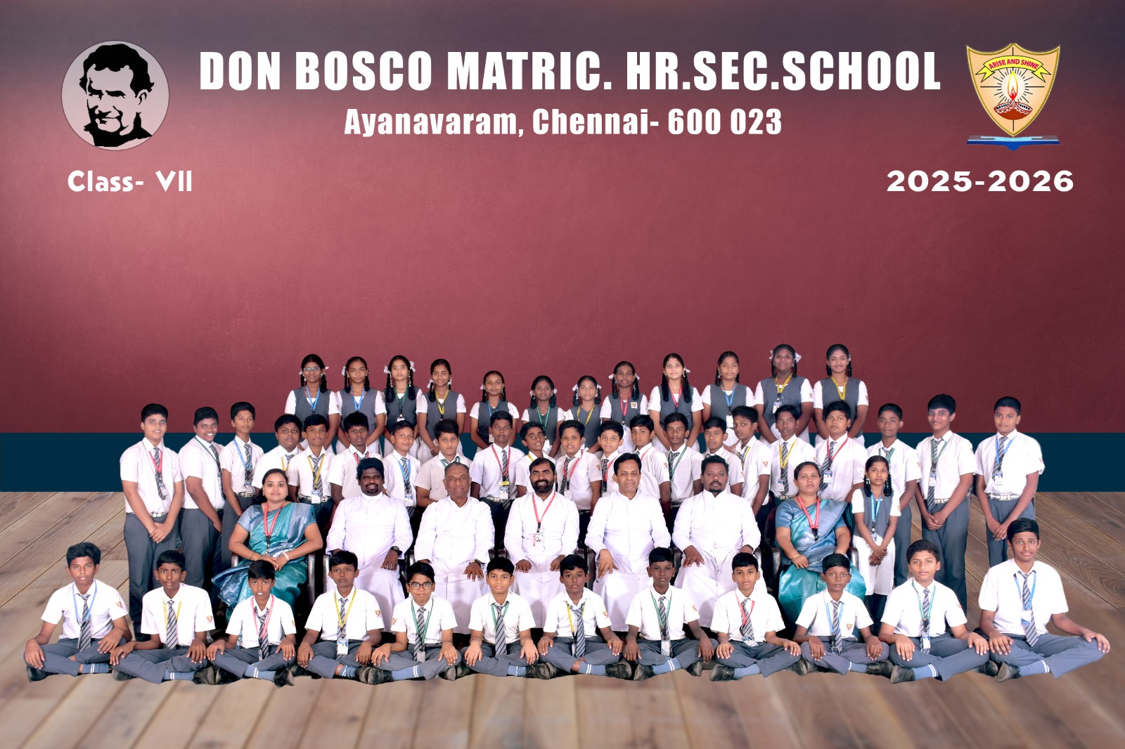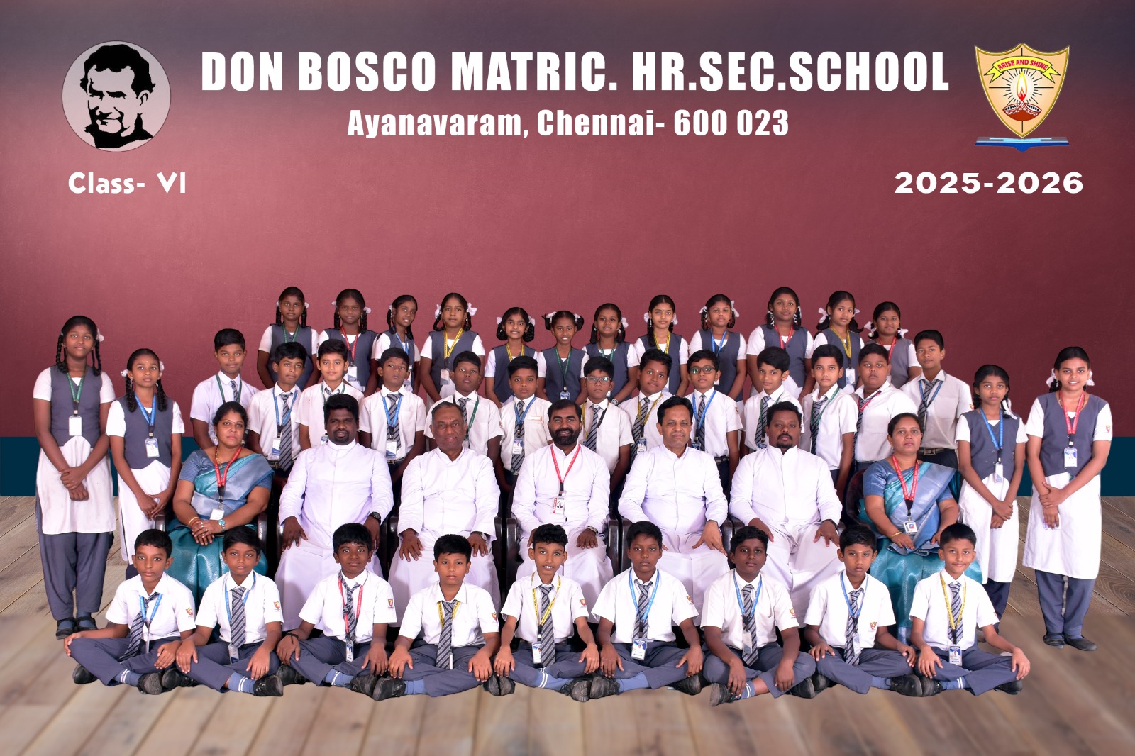 Class-wise Group Photographs (LKG to XII) The class-wise group photographs from LKG to XII were taken as a cherished record of the academic year 2025-2026, reflecting the unity and spirit of our institution. The photographs were captured in the esteemed presence of our Rector and Correspondent Father Thamathiruthavam SDB, our beloved Principal Father Vijay Williams SDB, Vice Principal Ms. Fathima Selvi, Community Fathers, dedicated teaching faculty, and office staff. These photographs stand as a lasting testament to the collective commitment, guidance, and harmonious collaboration of our entire school community.